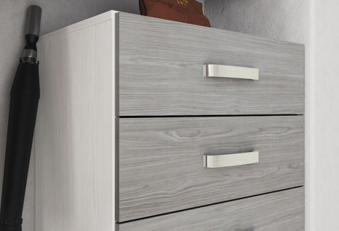 9. Puedes poner varios cajones con la apertura completa, para que nada se quede escondido atrás. Otra opción es la cajonera te da 4 cajones extra, que puedes poner debajo del colgador de ropa corta o como una isla.